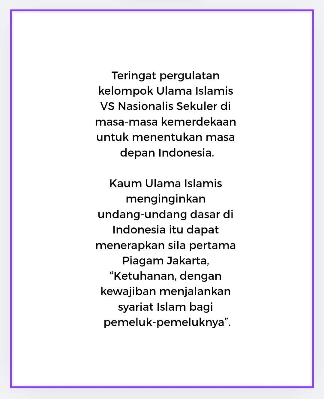 Teringat pergulatan kelompok Ulama Islamis VS Nasionalis Sekuler di masa-masa kemerdekaan untuk menentukan masa depan Indonesia.