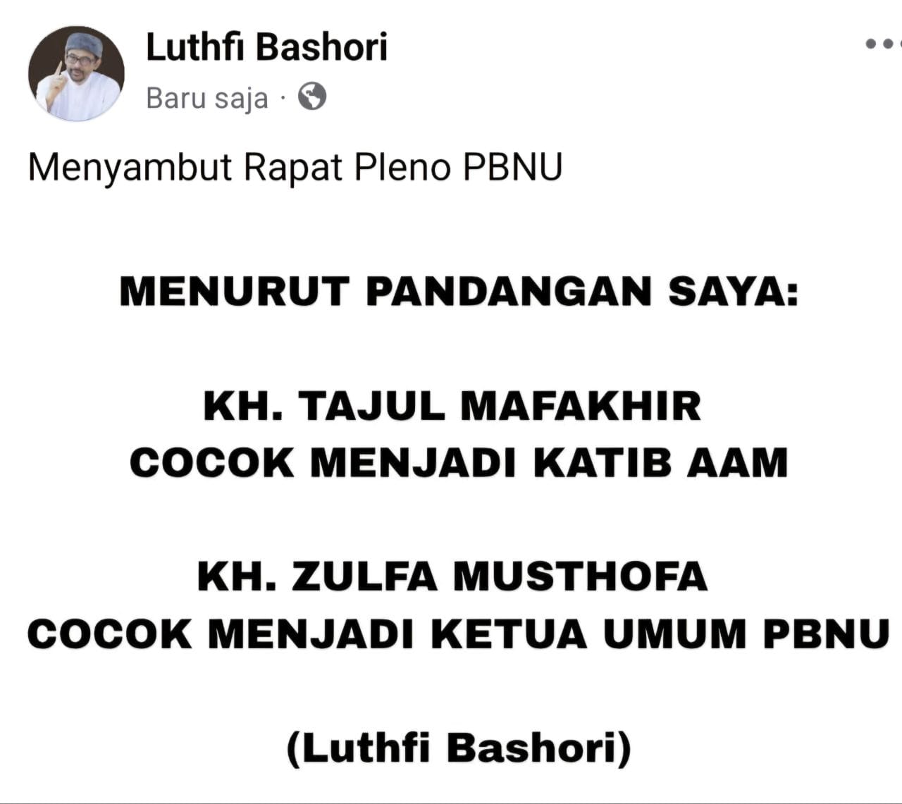 MENURUT PANDANGAN SAYA :KH. TAJUL MAFAKIRCOCOK MENJADI KATIB AAMKH. ZULFA MUSTHOFACOCOK MENJADI KETUA UMUM PBNU( LUTHFI […]